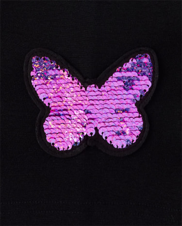 Girls Flip Sequin Butterfly Fleece Lined Leggings - black