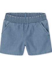 Baby And Toddler Girls Paperbag Waist Denim Shorts - blue